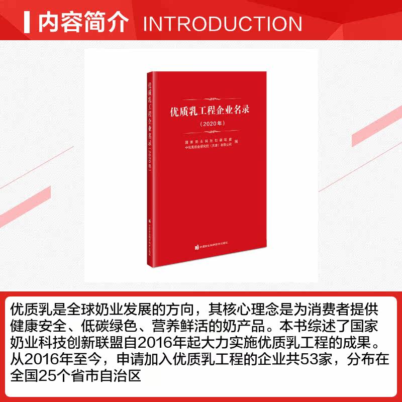 優(yōu)質(zhì)乳工程企業(yè)名錄(2020年) 非常優(yōu)秀奶業(yè)科技創(chuàng)新聯(lián)盟,中優(yōu)乳奶業(yè)研究院(天津)有限公司 編 經(jīng)濟理論經(jīng)管、勵志 新華書店正版圖書籍推廣熱賣行情