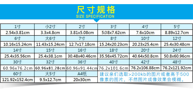 - 尺寸:3寸4寸5寸大5寸6寸大6寸7寸其它尺寸