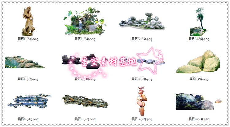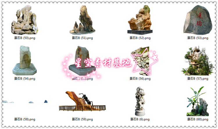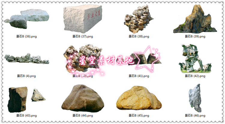 宝贝详情:PS假山景石素材,本套素材共231图片,解压后文件大小(咨询特价)G!部分图片已转换为PNG格狮PNG格尸占用空间小,像素和原PSD格式相同)!本套素材可直接拖入使用,无需再整理!拿到专业整理的素材,以后作图事半功倍!
