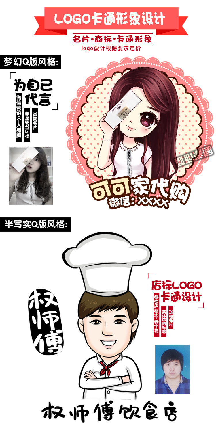 卡通logo設(shè)計(jì)Q版人物轉(zhuǎn)手繪頭像畫像定制形象真人照片情侶PS微信