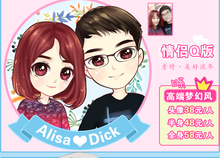 以后的時(shí)代是網(wǎng)絡(luò)社交時(shí)代,定制頭像必須成為各大網(wǎng)絡(luò)社交平臺的主流。本款手繪漫畫可作為QQ頭像、論壇、貼吧、微博各大論壇、社區(qū)頭像,也可以沖洗相片、印制T恤、制作馬克杯、變色杯、拼圖、請?zhí)⒑?bào)、大頭貼、婚禮迎賓牌、胸章、卡貼、電腦桌面、、生日禮品等等,同時(shí)也是情人節(jié)、教師節(jié)、春節(jié)、父母親節(jié)、親朋好友的婚禮生日等送禮非常好的選擇!非常好紀(jì)念價(jià)值!