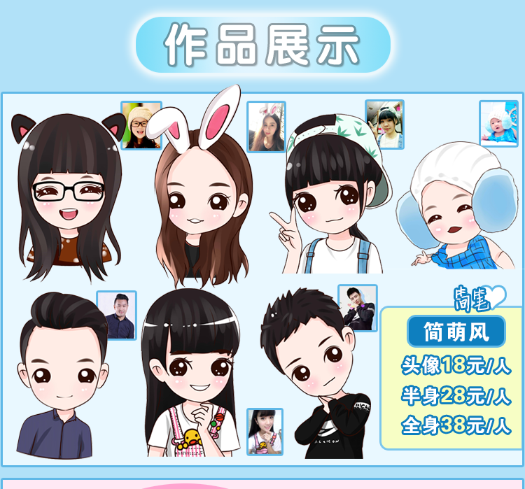 簡萌風(fēng)頭像特價(jià)9.9 ,如選其他高端風(fēng)格定制客服報(bào)價(jià)。