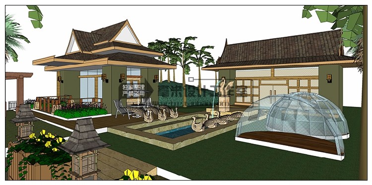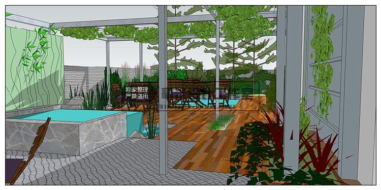 屋頂花園SU模型露臺樓頂天臺空中花園sketchup景觀設(shè)計素材推廣熱賣行情