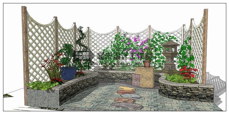 屋頂花園SU模型露臺樓頂天臺空中花園sketchup景觀設(shè)計素材價格行情