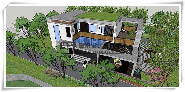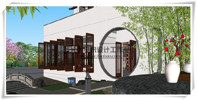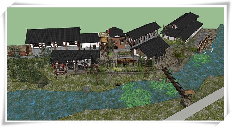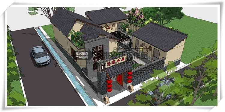 客栈su模型民宿度假村农家乐新中式sketchup乡村小院建筑设计素材价格行情