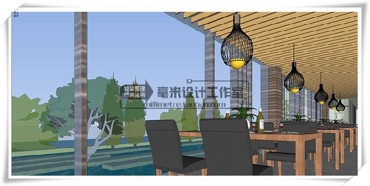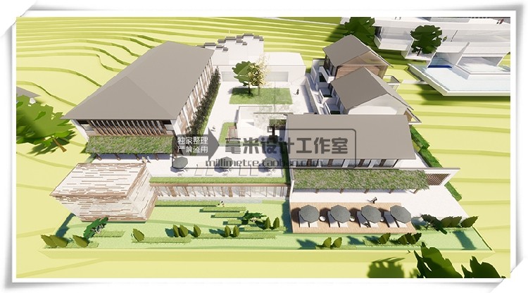 客栈su模型民宿度假村农家乐新中式sketchup乡村小院建筑设计素材