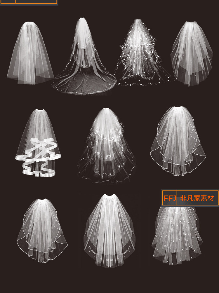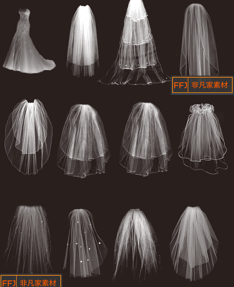 婚纱头纱PNG免扣水印 唯美白色网纱礼服照片装饰美化PS合成素材推广热卖行情