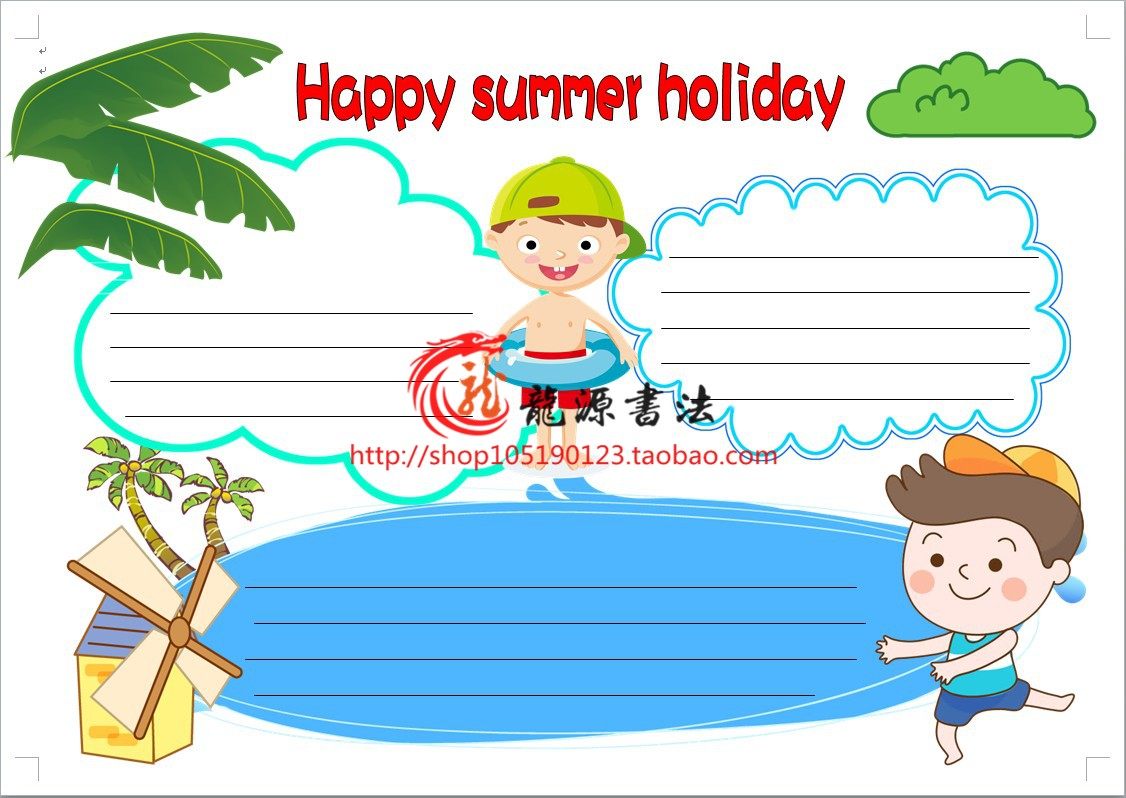 A4A3快樂(lè)暑假英語(yǔ)涂色手抄報(bào)模板 假期生活勾邊填色線描板報(bào)小報(bào)推廣熱賣行情