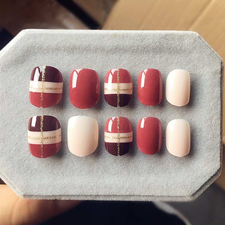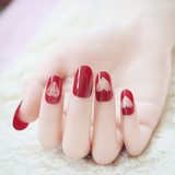 酒红色爱心钻石光疗美甲 简约成品美甲 成品假指甲美甲贴片 包邮
