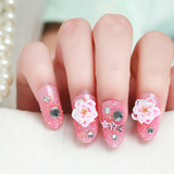 一盒24片装成品假指甲包邮 圆头花朵胶水款美甲贴片 照相拍照工具