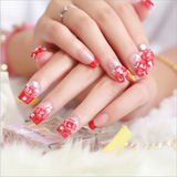 24片装假指甲美甲成品法式红色花朵胶水款影楼拍照背胶款指甲贴片