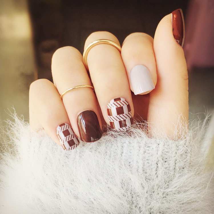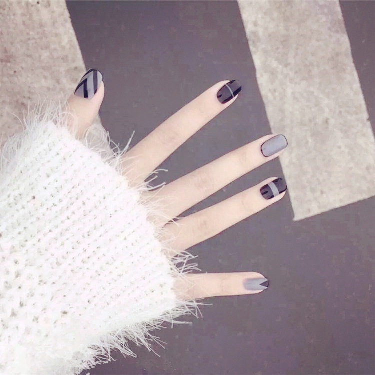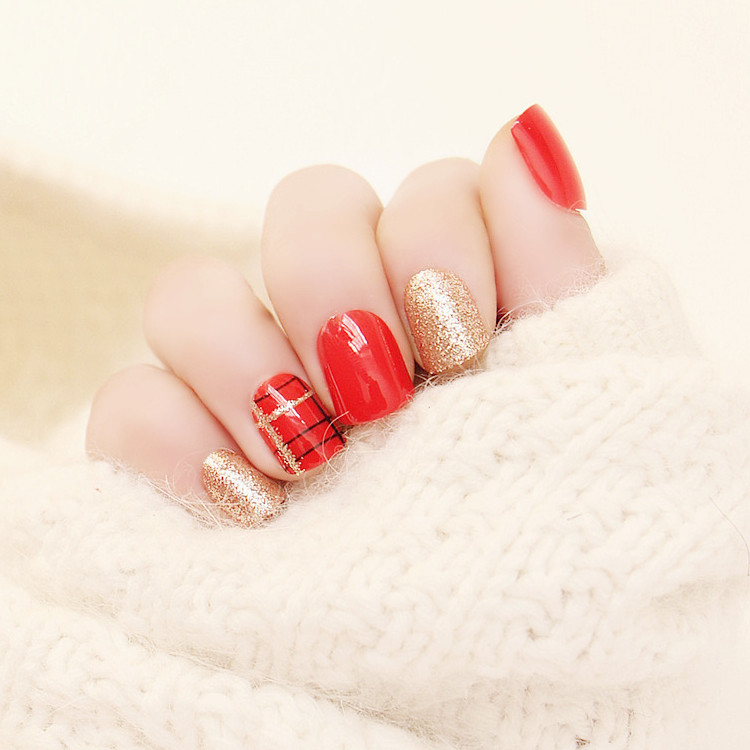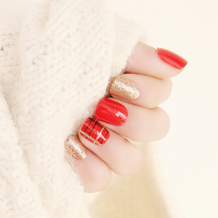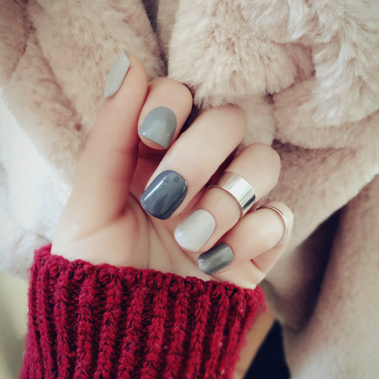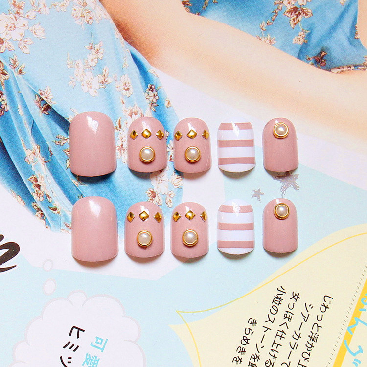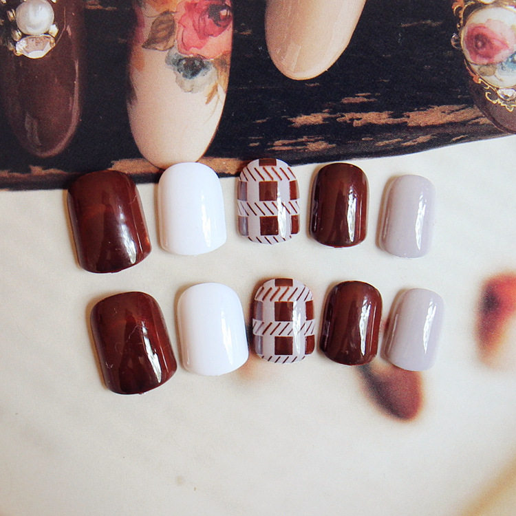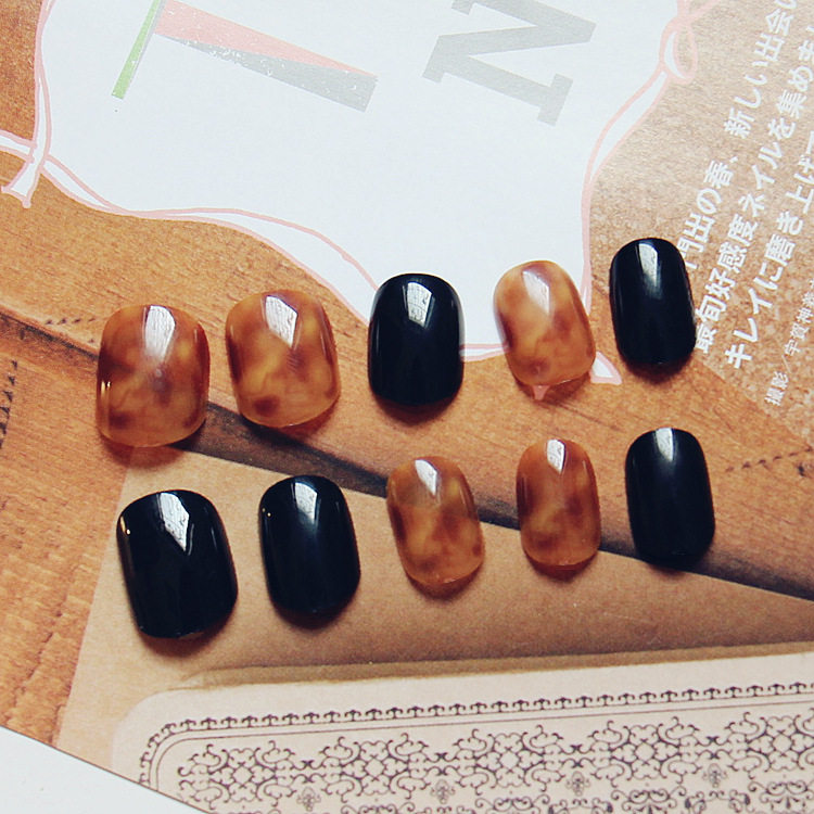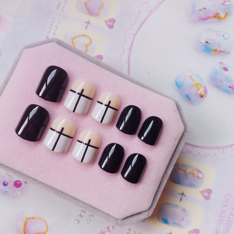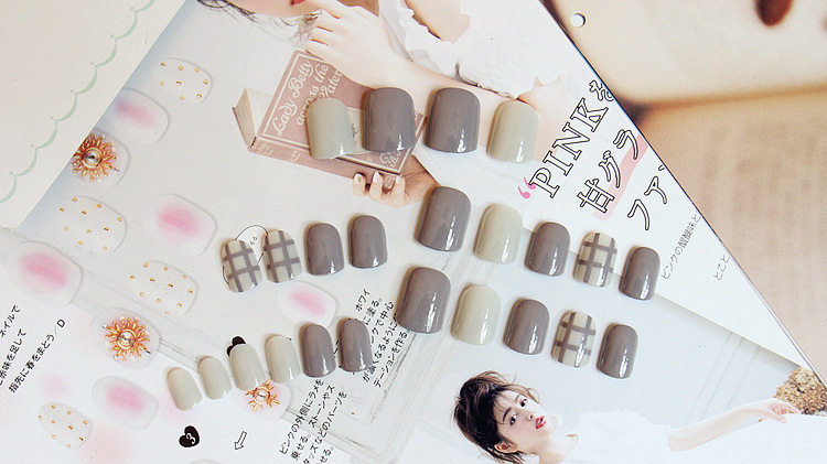 短款美甲贴片 成品假指甲片 日系平面短款美甲胶水款假指甲甲片