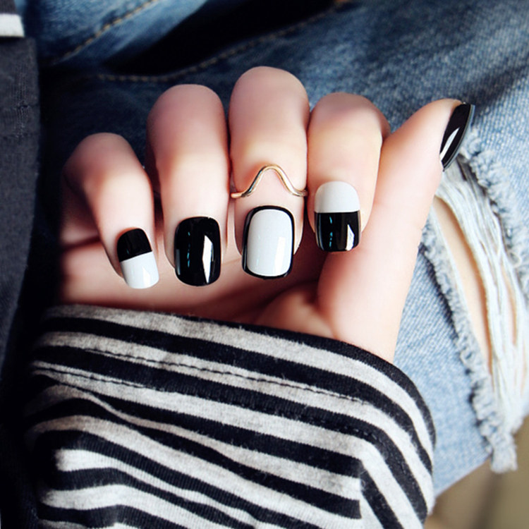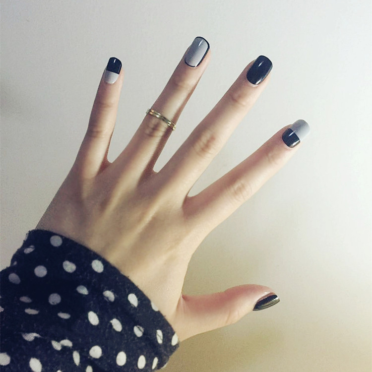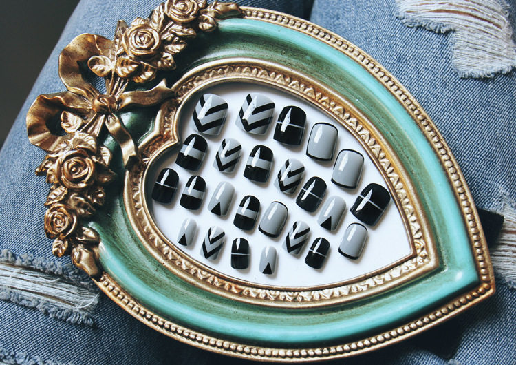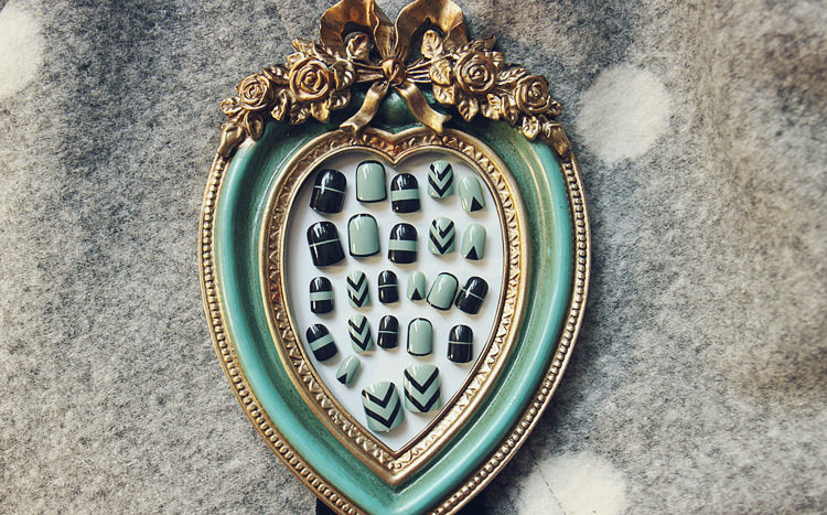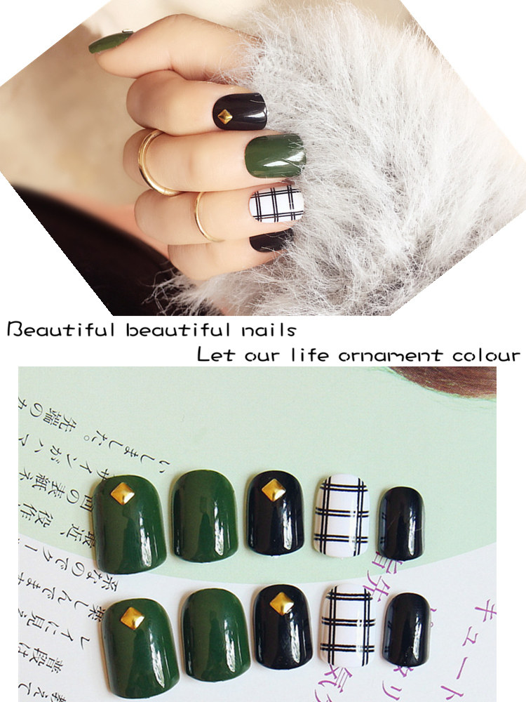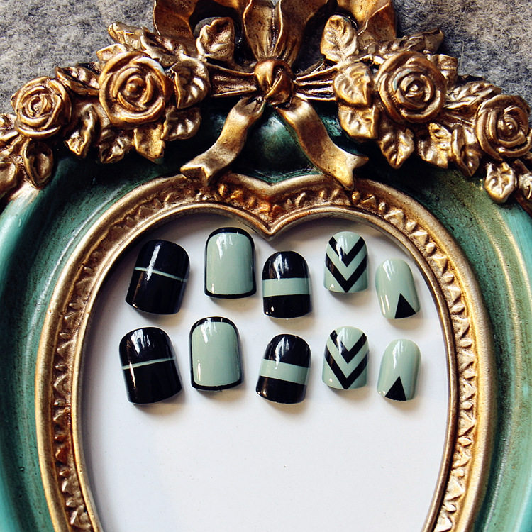 新品 流行 短款成品假指甲 潮范绿色黑包边 小短款美甲贴片 包邮价格行情
