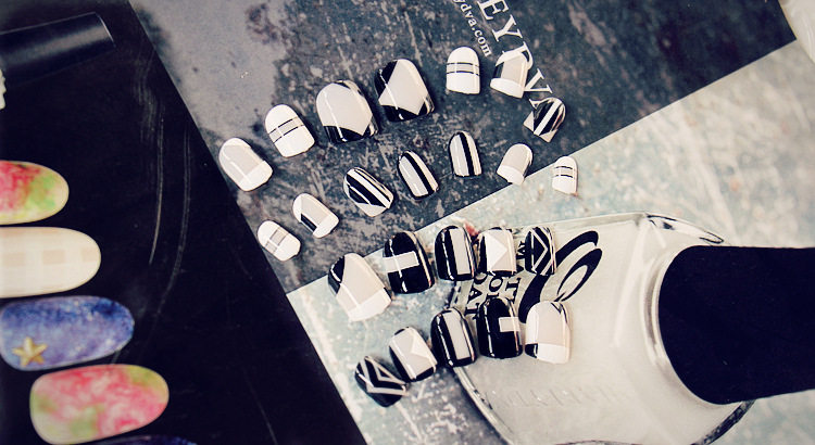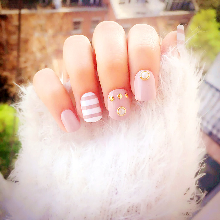 彩色条纹短款美甲成品假指甲平面贴片胶水款假指甲甲片24片盒装