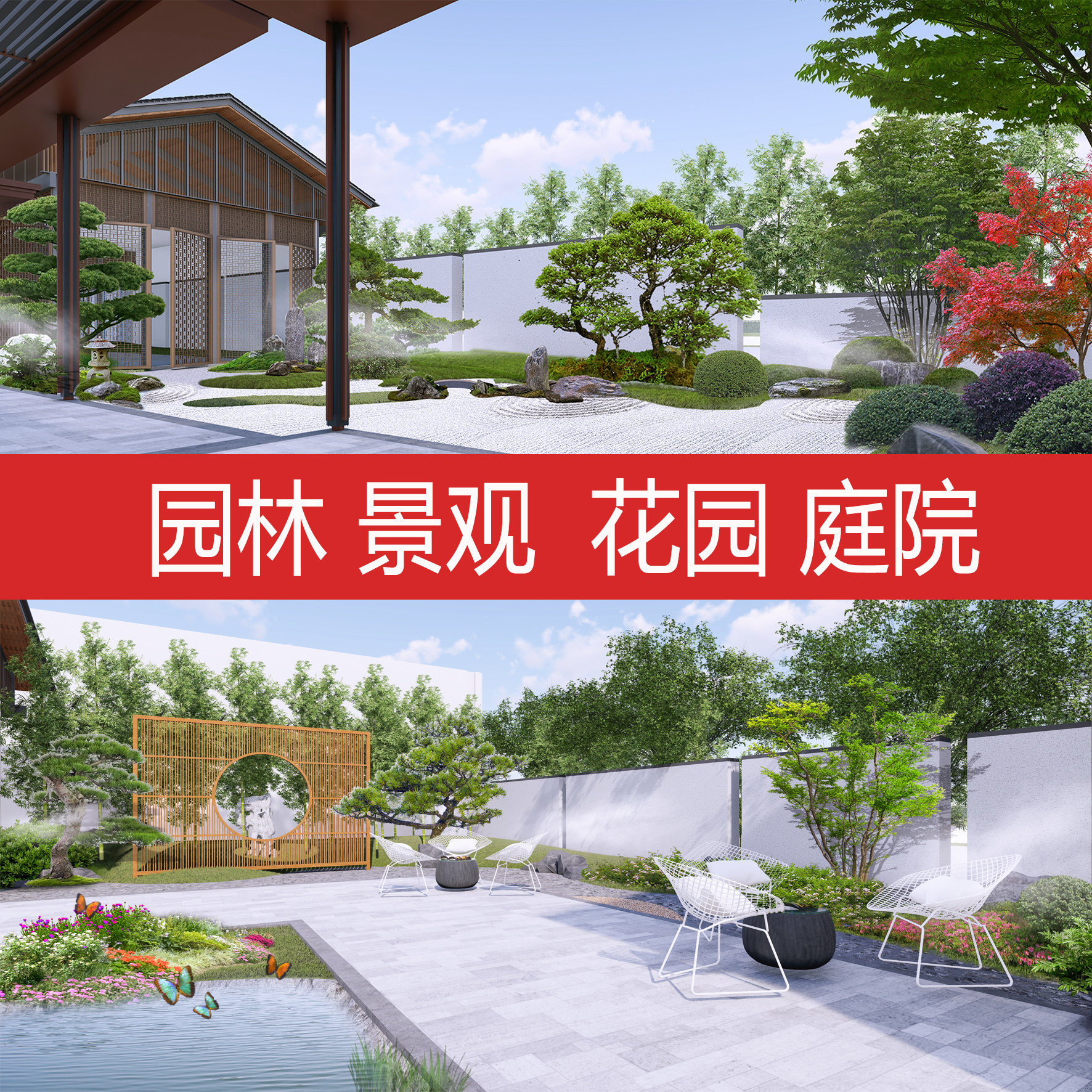 景觀設(shè)計(jì)方案別墅庭院花園林建筑室外鳥瞰效果圖PS制作su建模代做價(jià)格行情