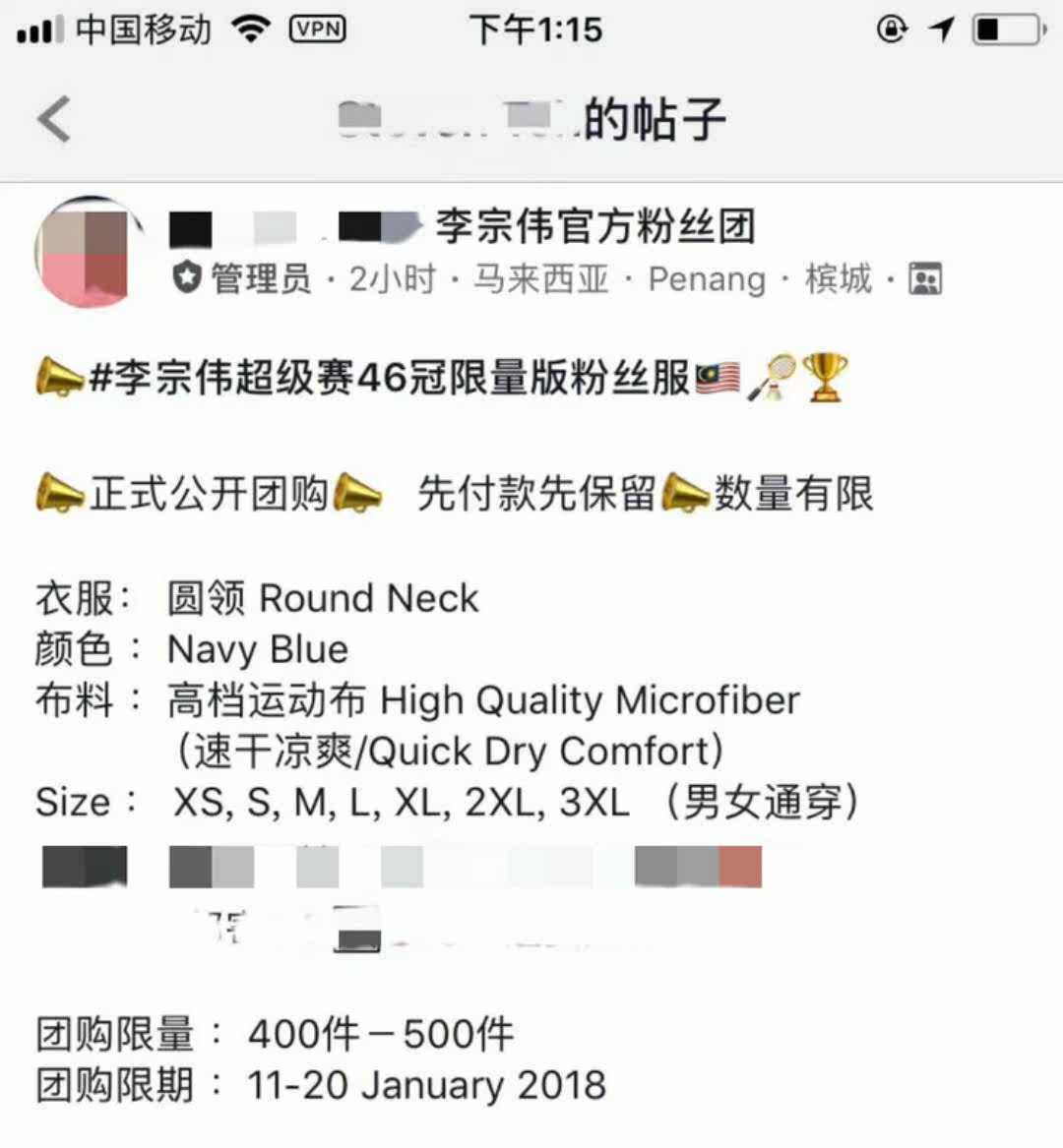 • 真衣 羽毛球服 李宗伟粉丝文化衫 超级赛46冠纪念服 速干LCW正品