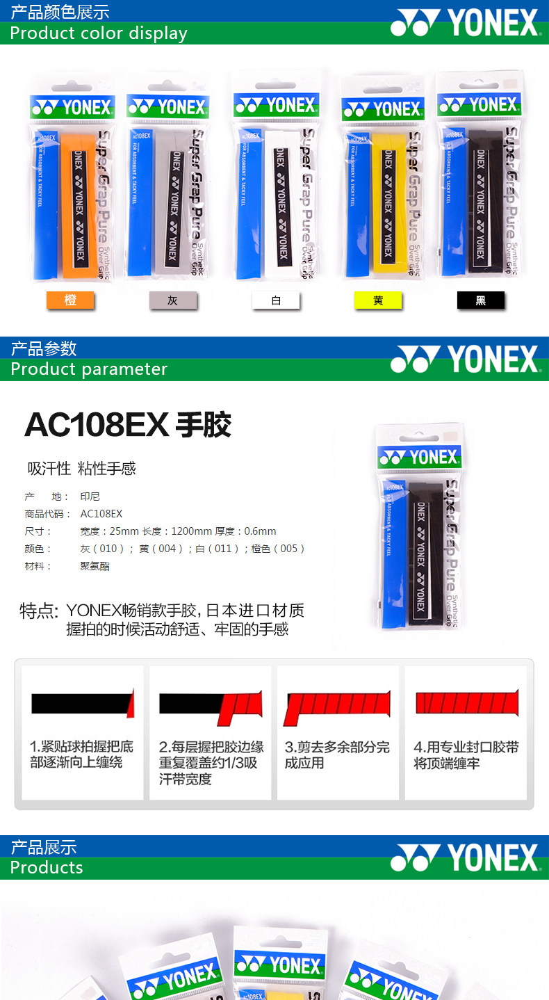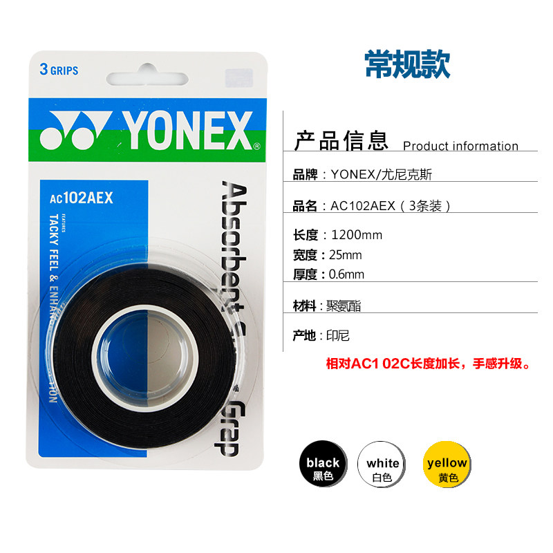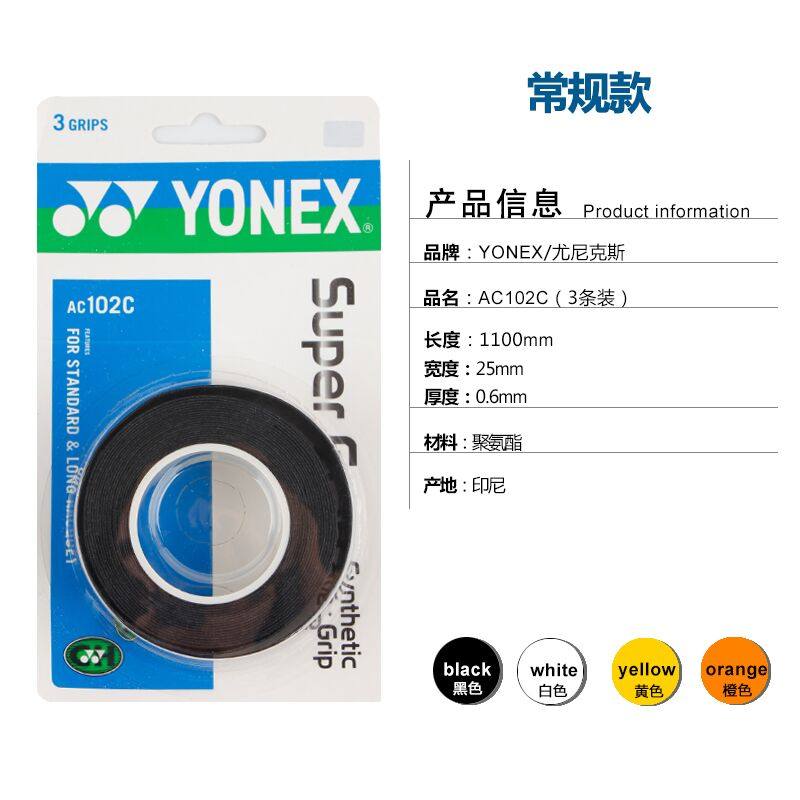 - 產(chǎn)品名稱:YONEX尤尼克斯羽毛球吸汗帶/手膠/柄皮(三條裝)AC102C