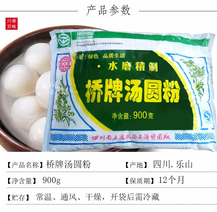四川小吃乐山特产桥牌汤圆粉900g 水磨精制元宵糯米粉 3袋包邮价格行情