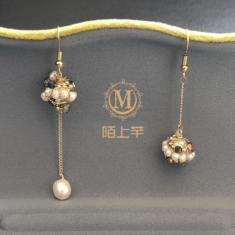 原創(chuàng)設(shè)計 不對稱耳環(huán)韓國 氣質(zhì) 一長一短巴洛克淡水珍珠個性耳墜