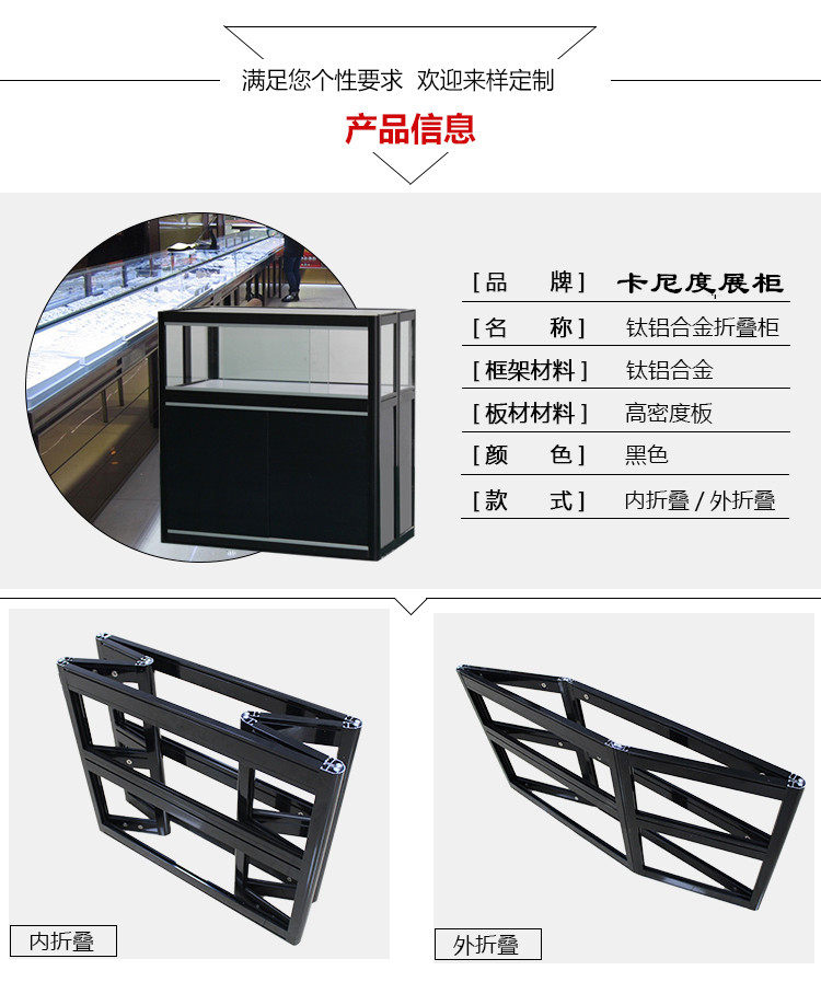 珠宝展示专用玻璃折叠柜 折叠展柜 黑色玻璃折叠柜推广热卖行情