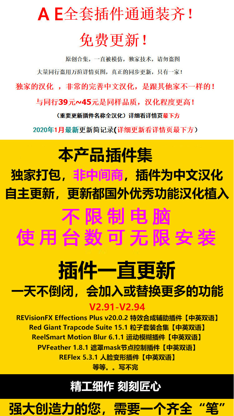 AE插件2020一鍵安裝全套中文合集包粒子調(diào)色腳本e3d支持CC2018\19價(jià)格行情