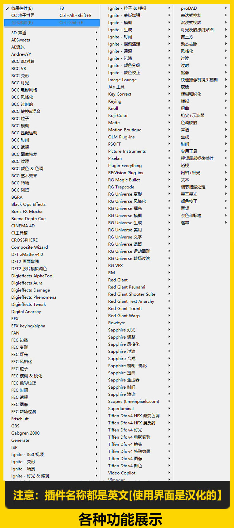 AE插件2020一鍵安裝全套中文合集包粒子調(diào)色腳本e3d支持CC2018\19推廣熱賣(mài)行情