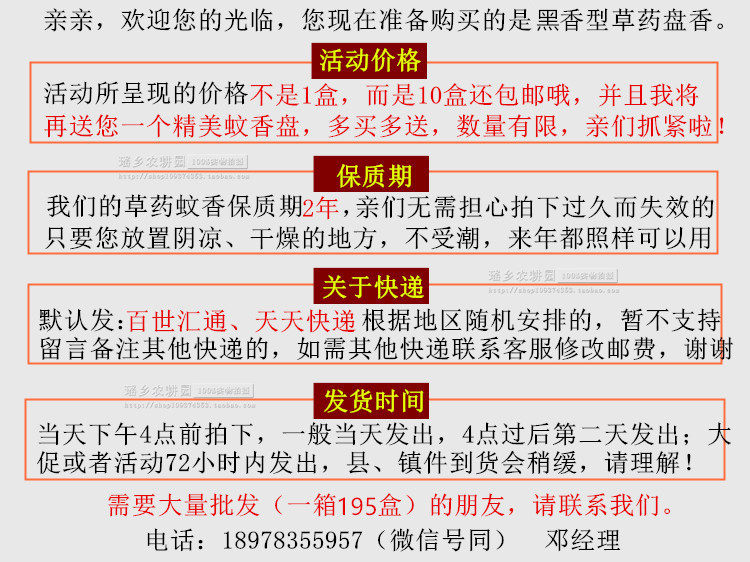 本店有3款蚊香(檀香型盤香、黑香型盤香。檀香型支香)價(jià)格相同,效果一樣。此款為黑香型盤香