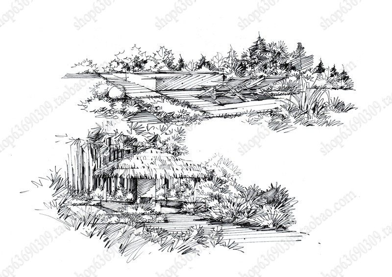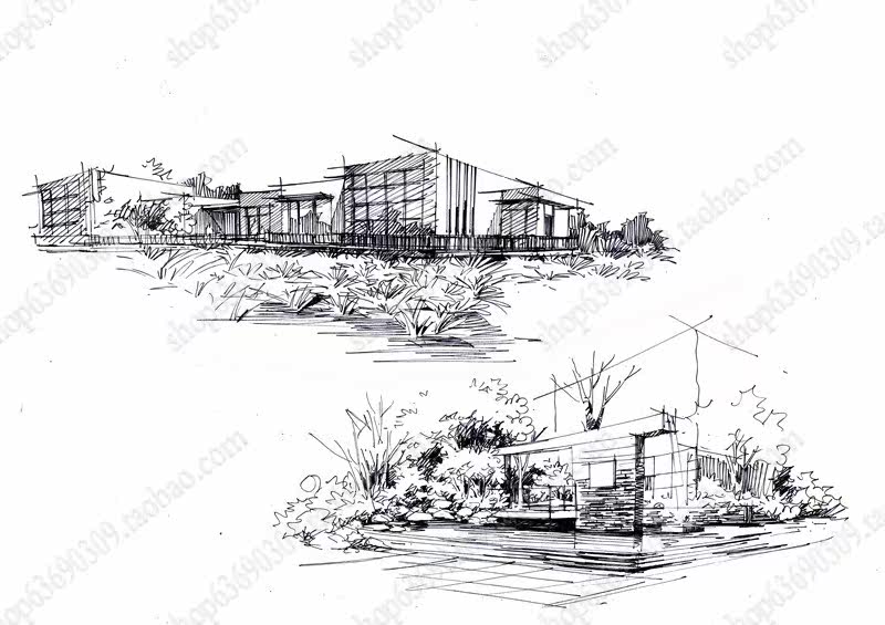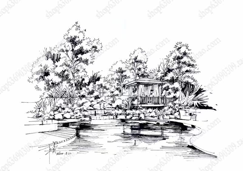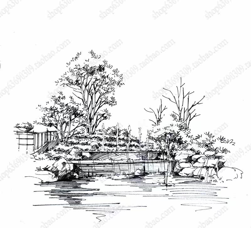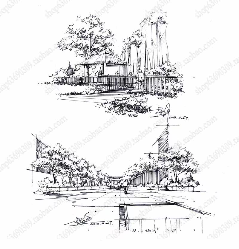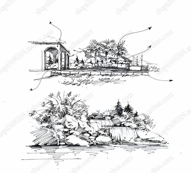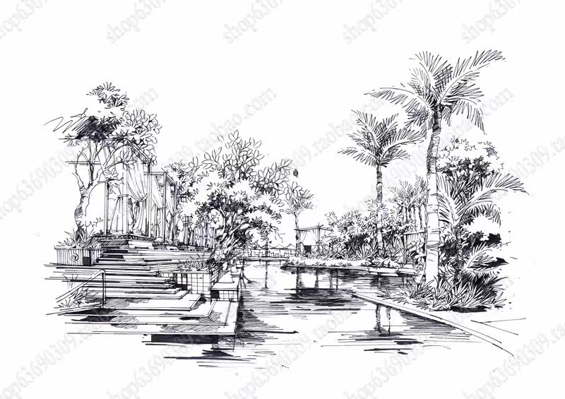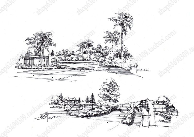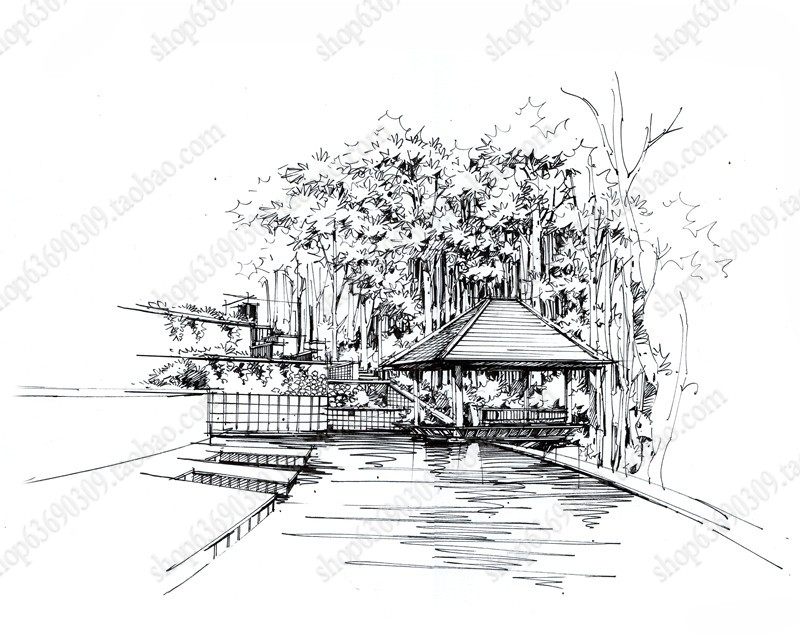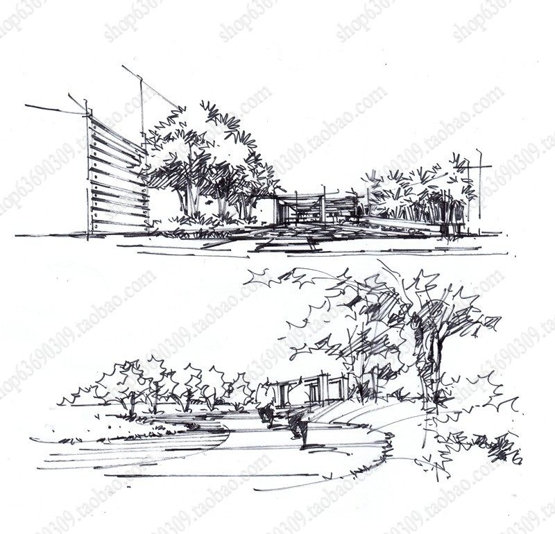高清景观手绘线稿 园林考研线稿设计素材JPG图片临摹环艺资料价格行情