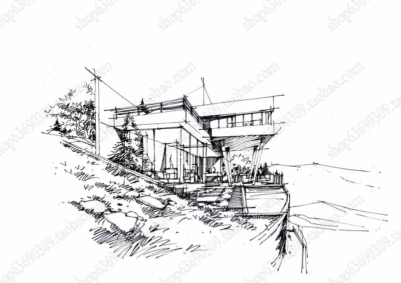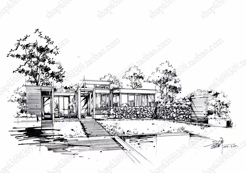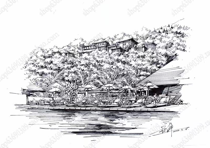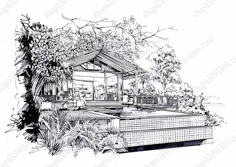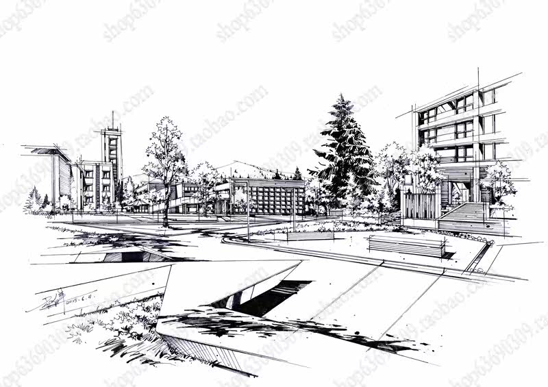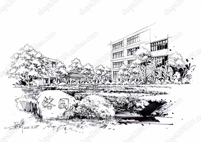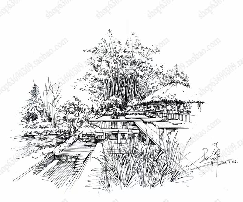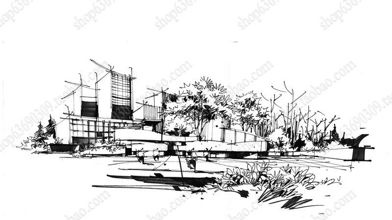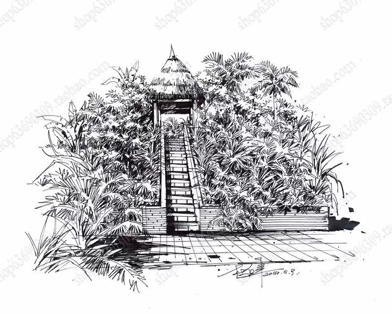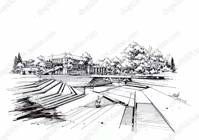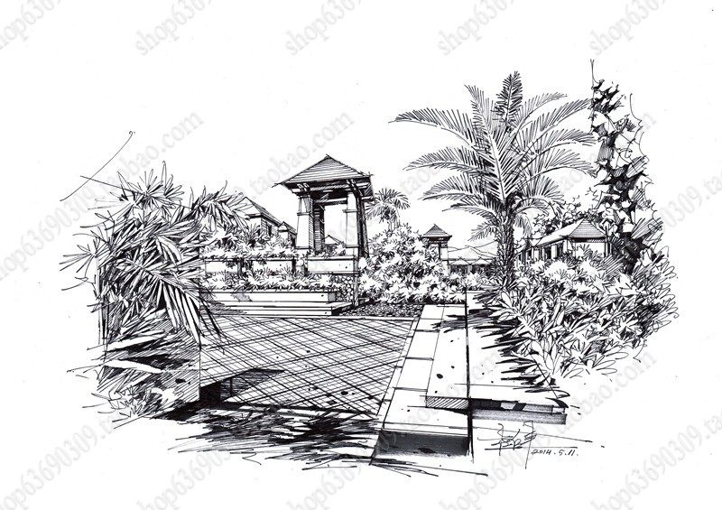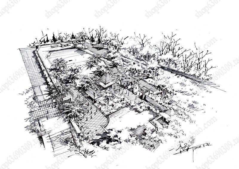 高清景观手绘线稿 园林考研线稿设计素材JPG图片临摹环艺资料价格行情