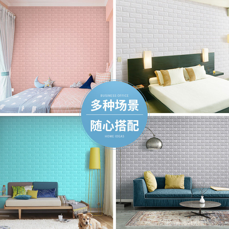 3d立體泡沫墻貼壁紙自粘墻紙防水可擦洗防潮裝修材料裝飾墻面翻新價格行情