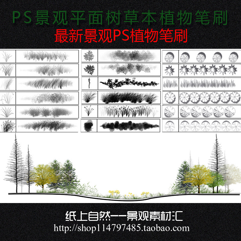 100余種PS 筆刷素材花草樹(shù)木等植物筆刷平面樹(shù)草本植物景觀(guān)素材