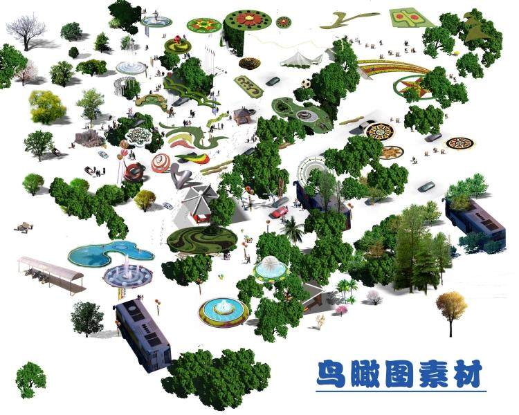 園林景觀綠化設(shè)計(jì)PSD樹木花草室外植物鳥瞰圖效果圖PS后期素材庫(kù)