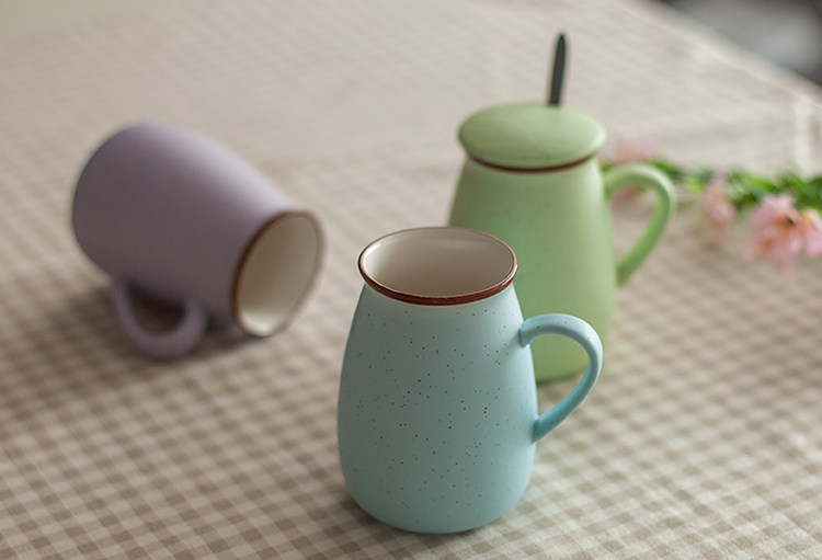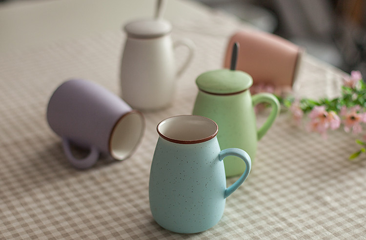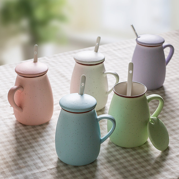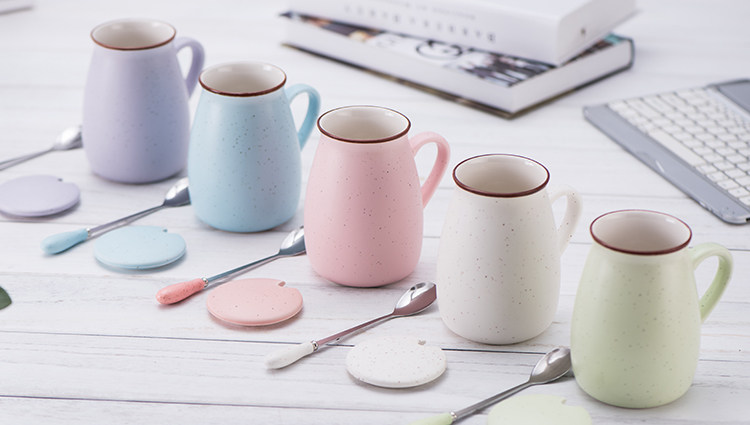情侶陶瓷對杯 復古早餐牛奶杯 卡通水杯 咖啡杯 馬克杯 帶蓋帶勺推廣熱賣行情