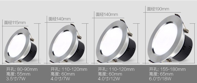 贤城led筒灯3w2.5寸4寸12w5寸18W服装店射灯天花灯开孔7.5/11公分推广热卖行情