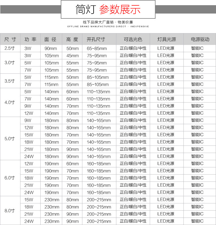 • 颜色分类:塑料新款4寸9W正白或暖白一体新款6寸21W6寸12W正白或暖白2.5寸5W正白或暖白塑料新款3寸7W正白或暖白5寸12W正白或暖白8寸24W正白或暖白一体新款6寸18W正白塑料新款2.5寸3W(买一送一5寸18W正白或暖白4寸12W正白或暖白3寸3W正白或暖白5寸21W正白或暖白塑料新款5寸15W正白或暖白3.5寸7W正白或暖白3寸7W正白或暖白4寸7W正白或暖白4寸9W正白或暖白2寸3W(5-6.5公分)塑料新款2.5寸3W三色变光一体新款3.5寸5W正白3寸5W正白或暖白一体新款2.5寸3W(买一送一