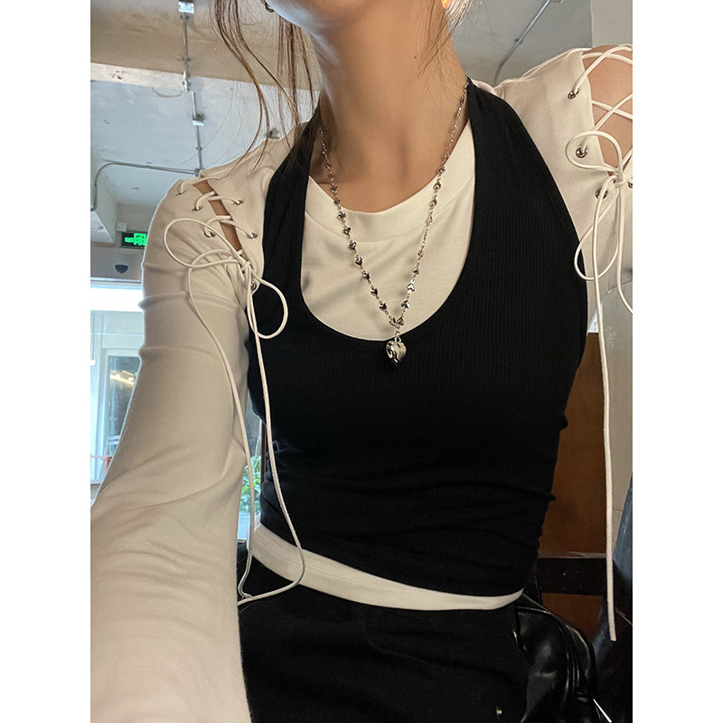 紅人館掛脖吊帶背心女夏季外穿辣妹設計感小眾法式打底白色上衣女