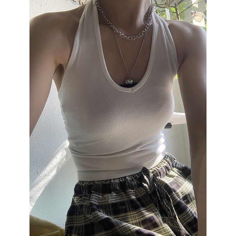 紅人館掛脖吊帶背心女夏季外穿辣妹設計感小眾法式打底白色上衣女價格行情