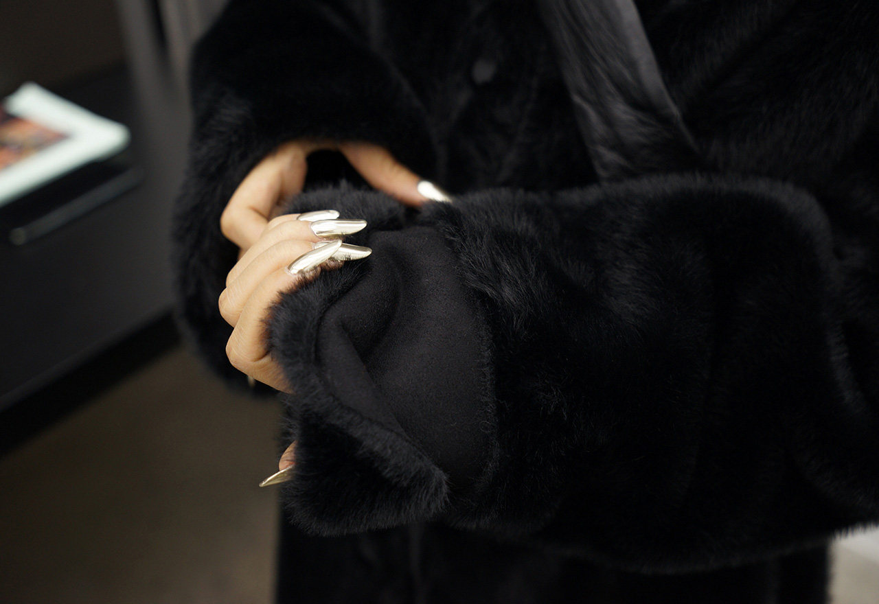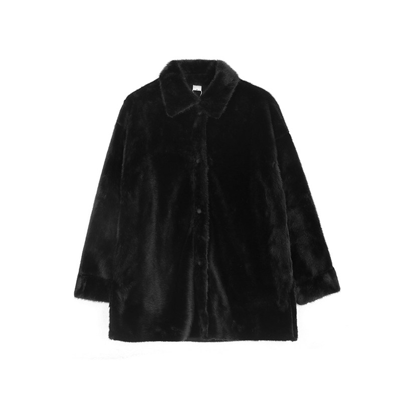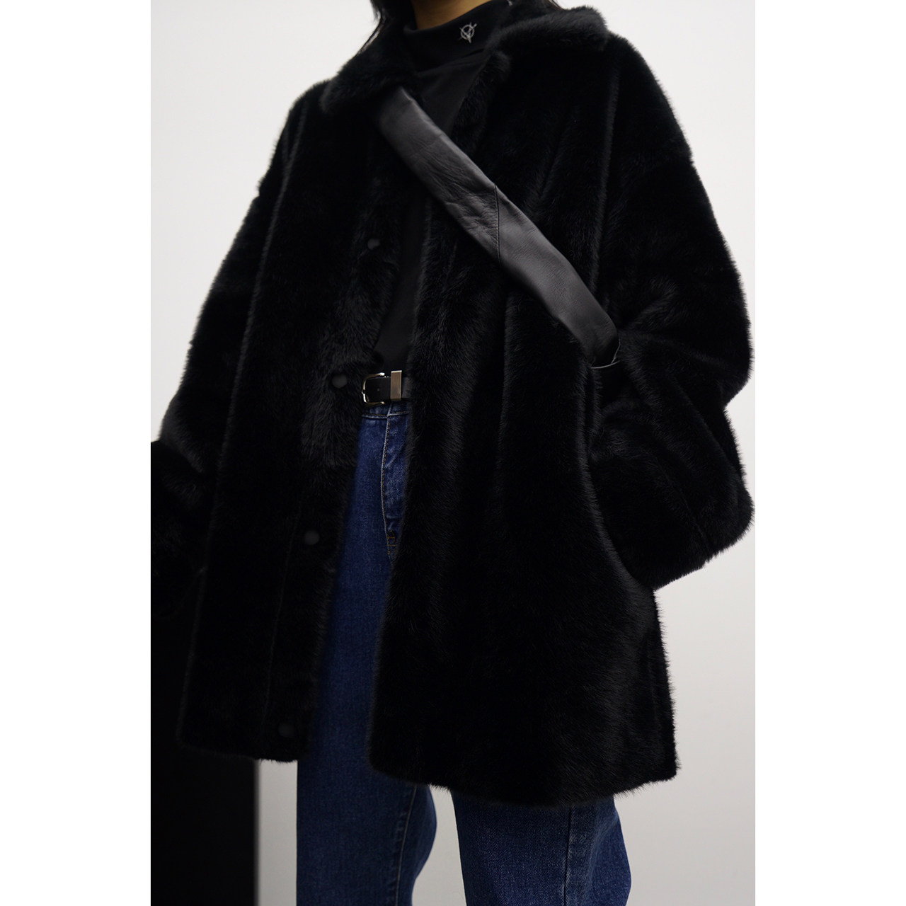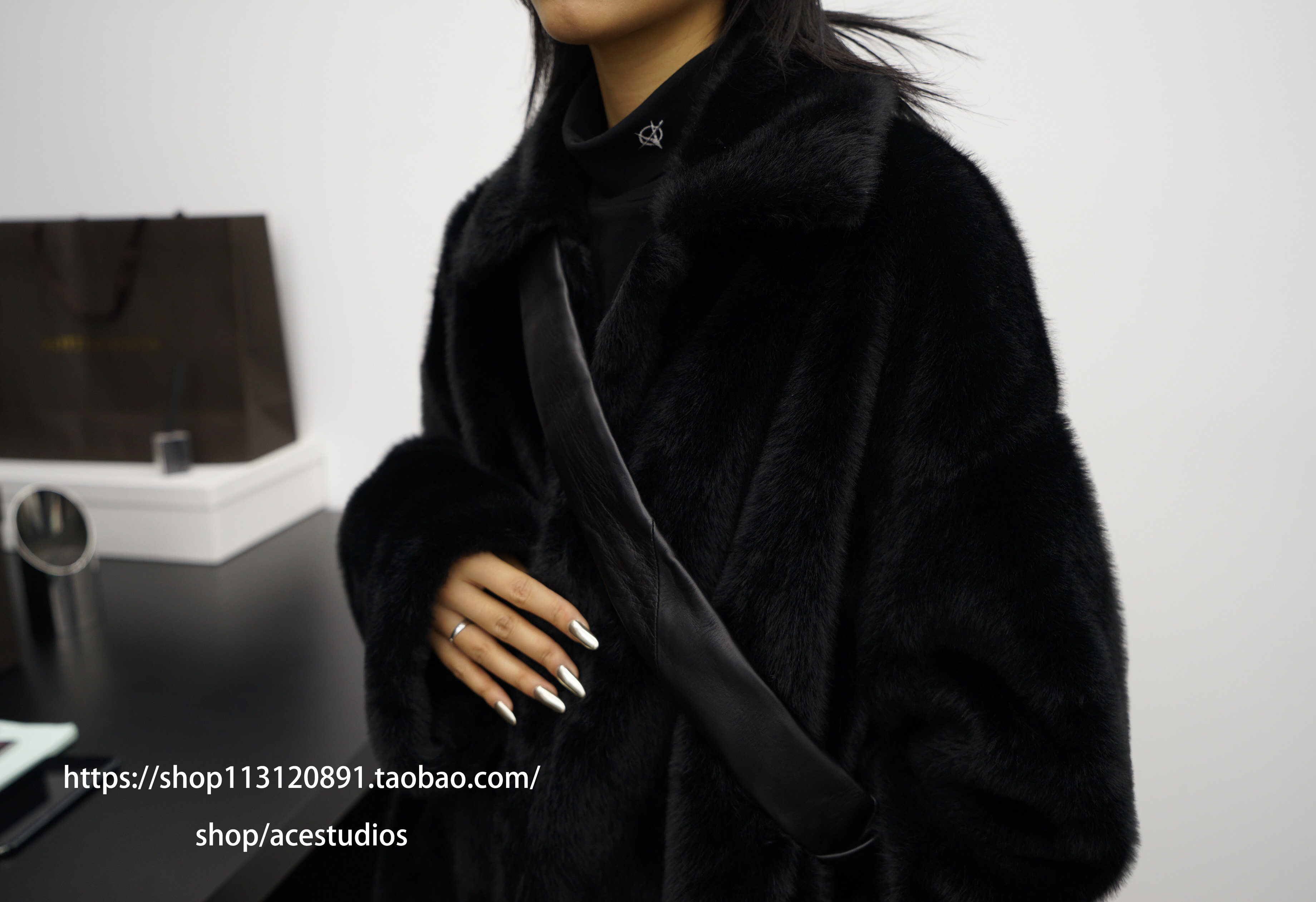 Ace 黑色仿水貂毛外套女皮毛一体中长款2021秋冬款獭兔毛毛绒上衣