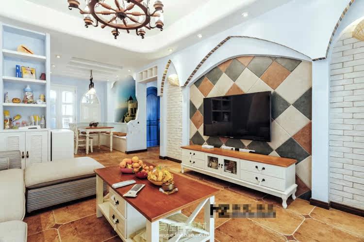 地中海風格室內(nèi)裝修效果圖電視背景墻家裝設(shè)計家居地中海裝修圖片推廣熱賣行情