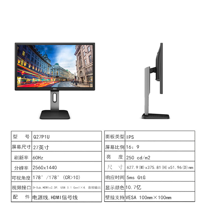 AOC Q27P1U 27寸2K升降旋轉(zhuǎn)作圖影音4K高清液晶顯示器 Q27P2C推廣熱賣行情