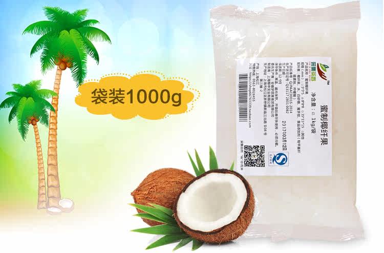 1000g袋裝蜜制椰纖果 奶茶甜品原料原味椰果粒椰子肉果肉水晶果價(jià)格行情
