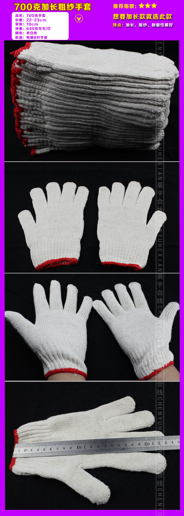 - 顏色分類:【熱賣款】500克24雙【熱賣款】500克60雙【熱賣款】500克72雙【800克】加厚款36雙500克足重加密款60雙350克最薄款60雙600克48雙700克36雙900克耐磨款36雙100%純棉500克60雙高尼龍手套60雙出口燈罩棉手套60雙出口漂白500克手套60雙特賣【夏季薄款】60雙新疆、西藏、青海、海南等不包郵