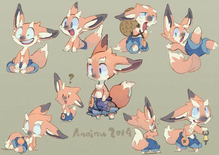 日式风 可爱卡通动漫Q版动物拟人角色原画设定 绘画参考素材