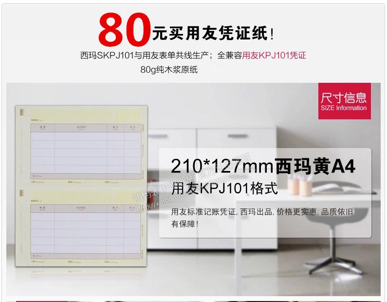 用友KPJ101西瑪表單A4金額記賬憑證打印紙SKPJ101會(huì)計(jì)辦公用品推廣熱賣(mài)行情