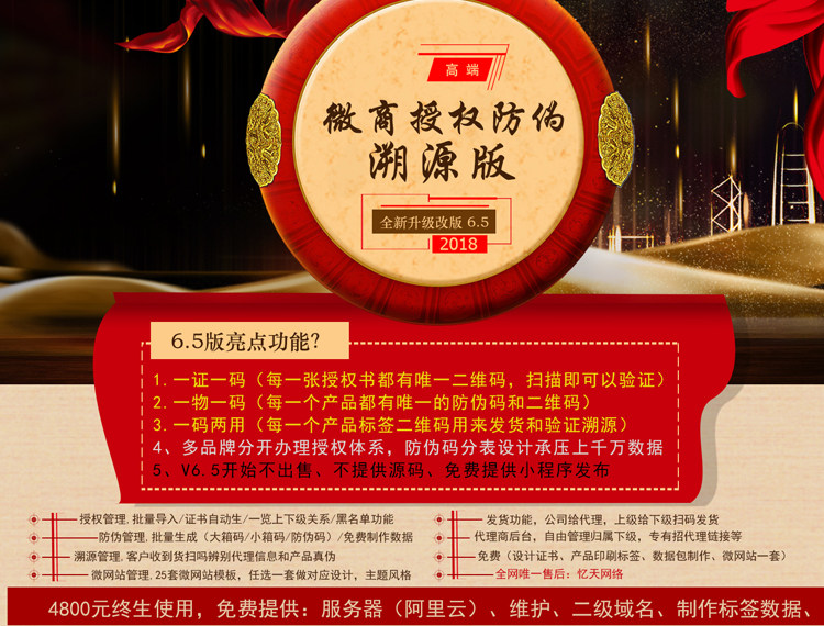 微商授權(quán)溯源系統(tǒng)V6.5開始不出售不提供源碼,終身使用(咨詢特價(jià)),寶貝標(biāo)價(jià)屬于后期維護(hù)單個(gè)小問(wèn)題修復(fù)費(fèi)用!