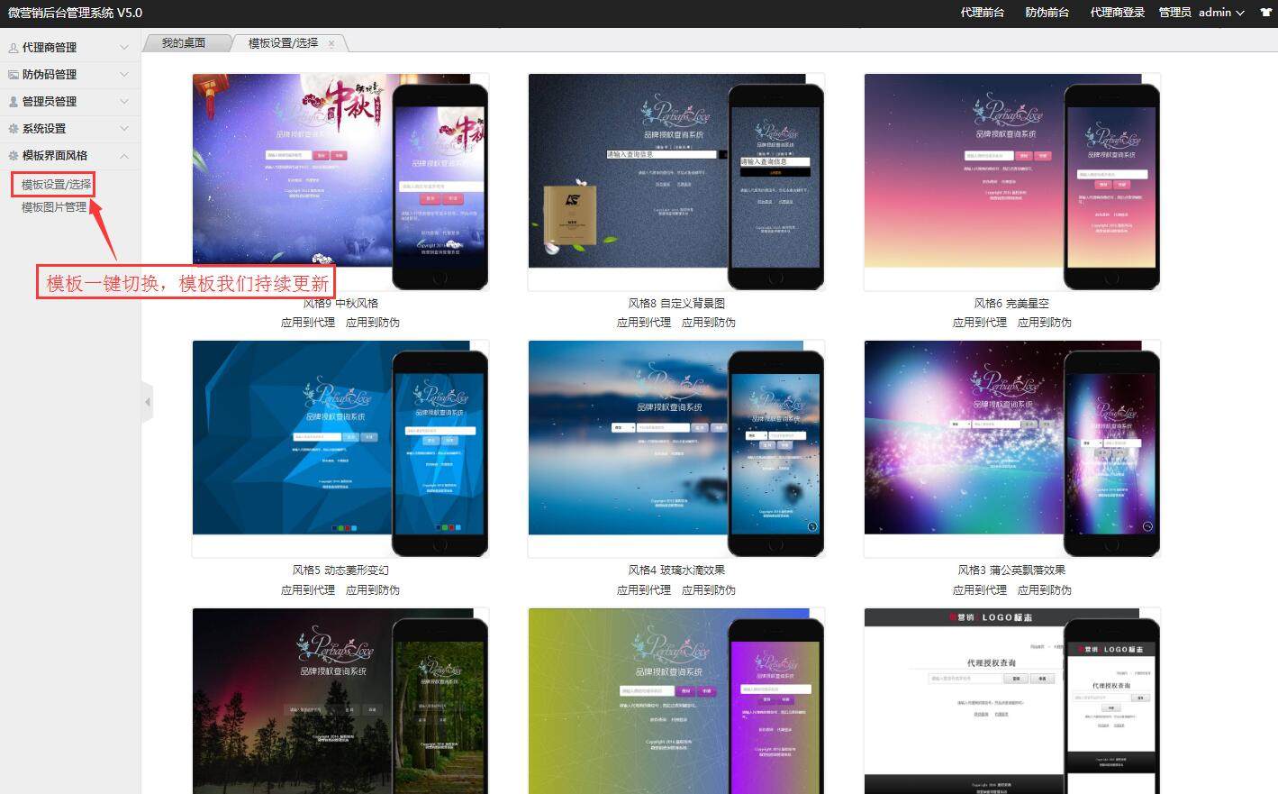 • 6.0-6.1重大更新,代理后臺(tái)界面優(yōu)化,增加25套微商模板,增加一證一碼等等