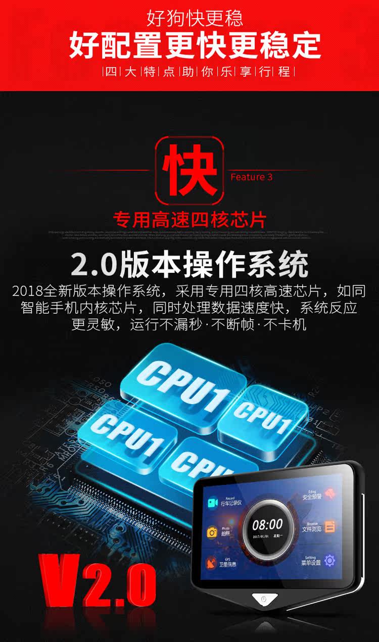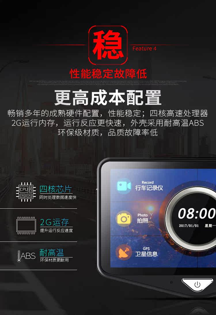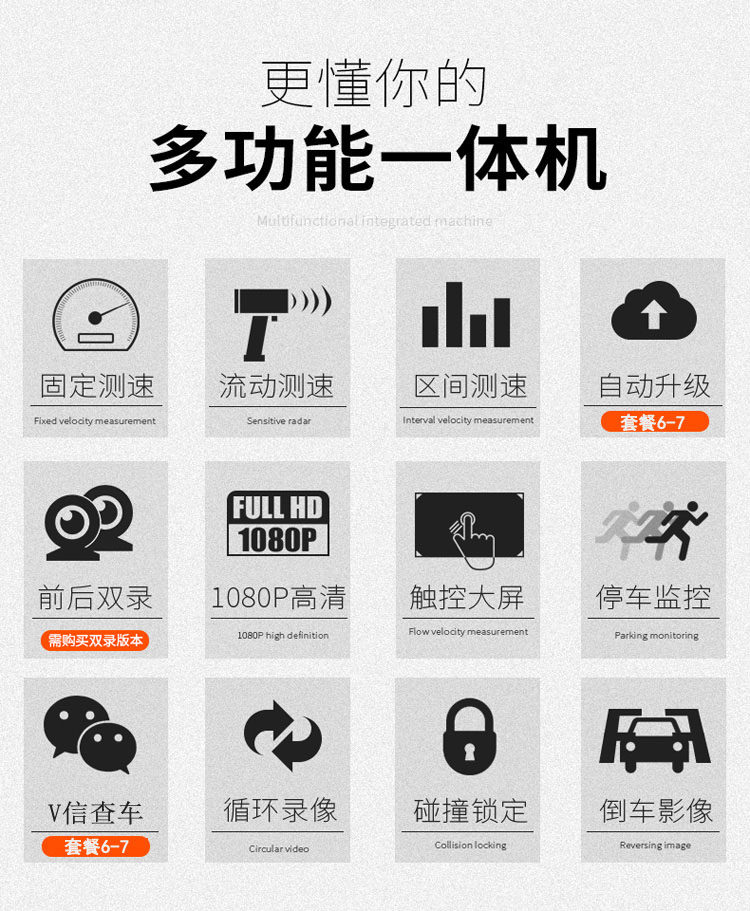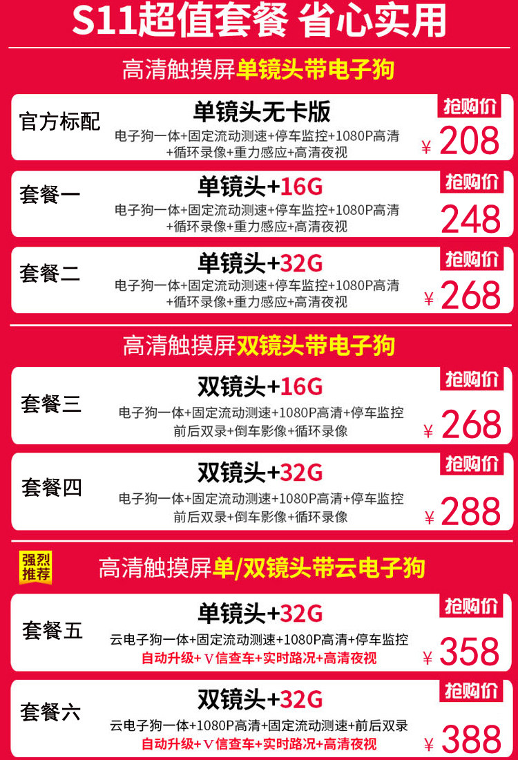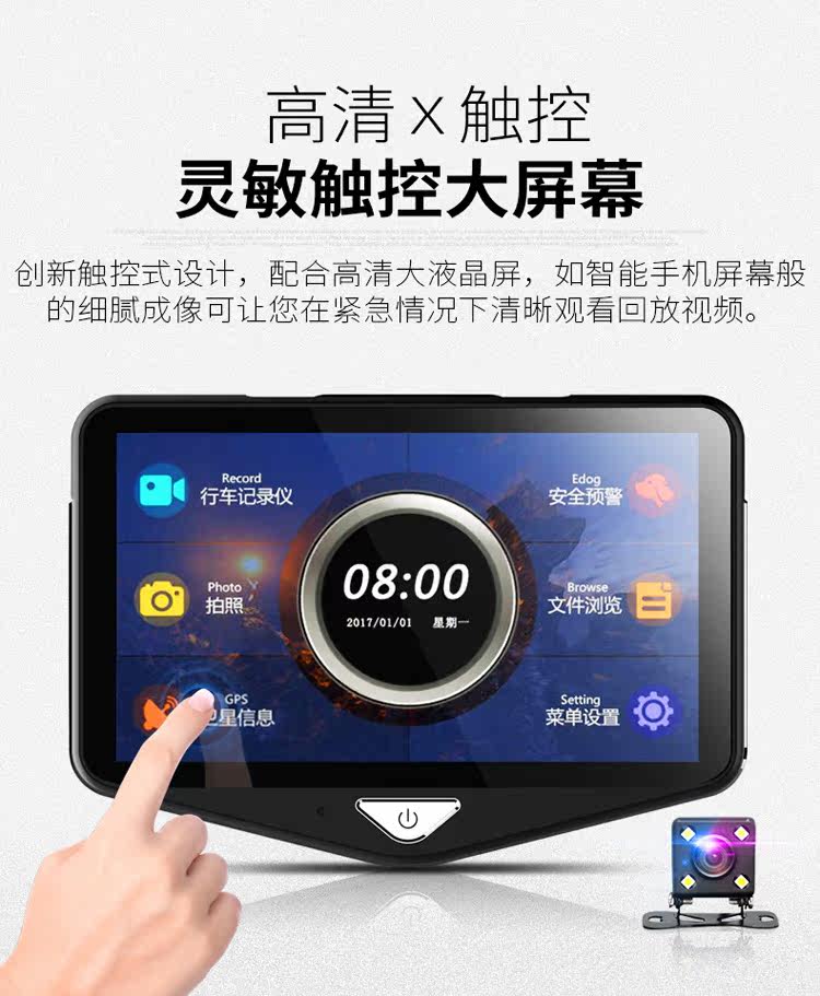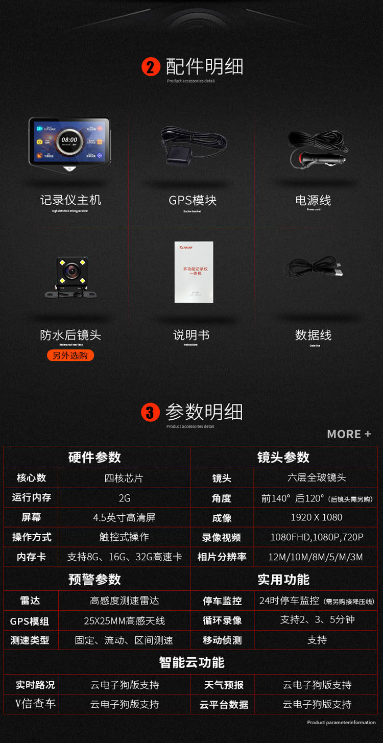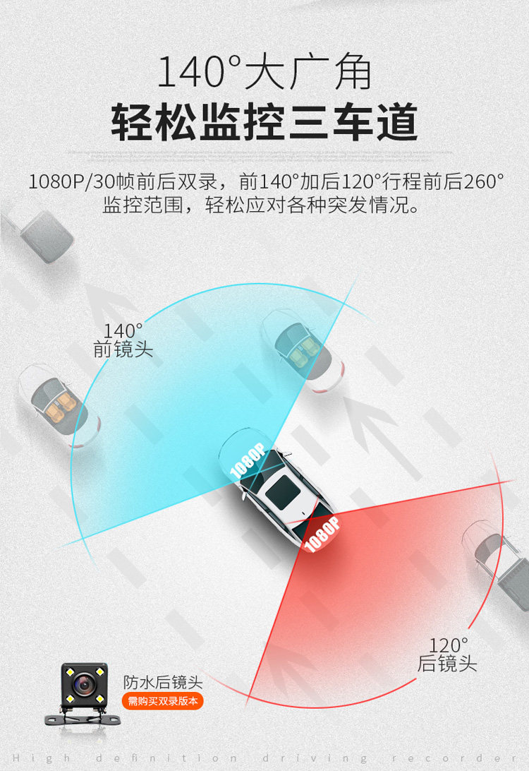 - 功能:夜視加強夜視補光循環(huán)錄像移動偵測倒車影像停車監(jiān)控流動測速碰撞感應前后錄像前后雙鏡頭