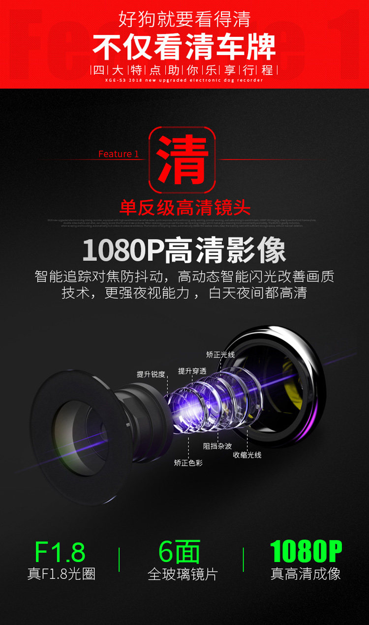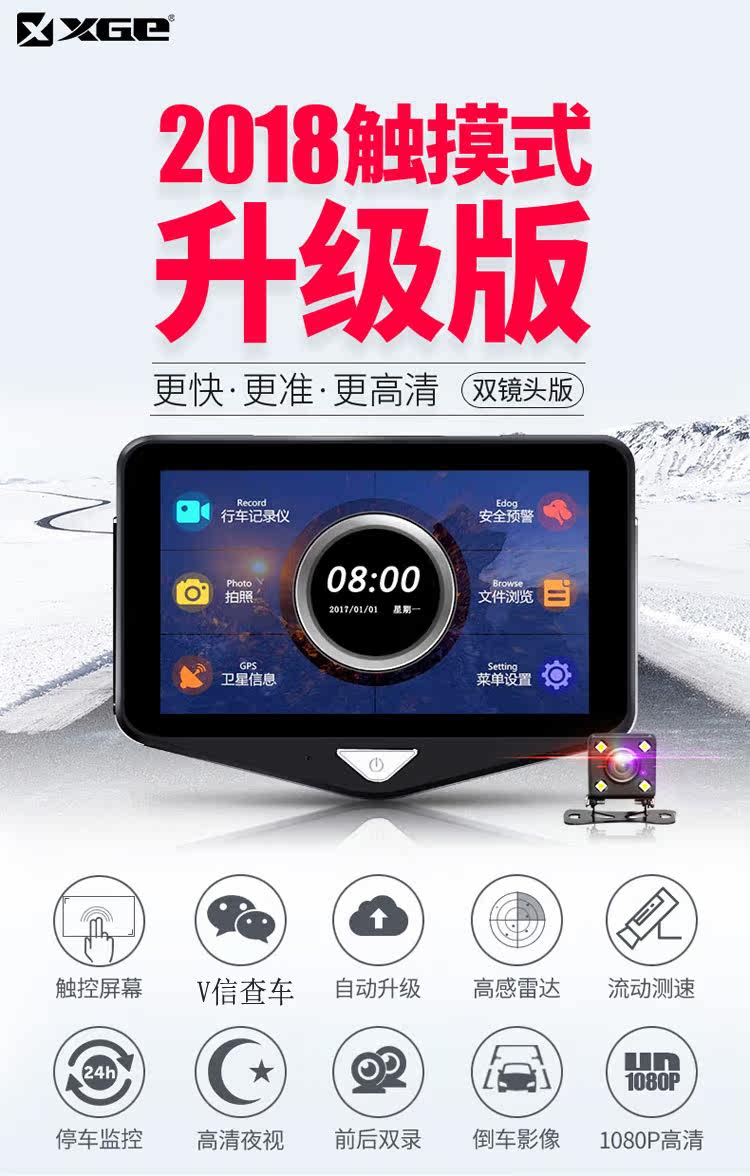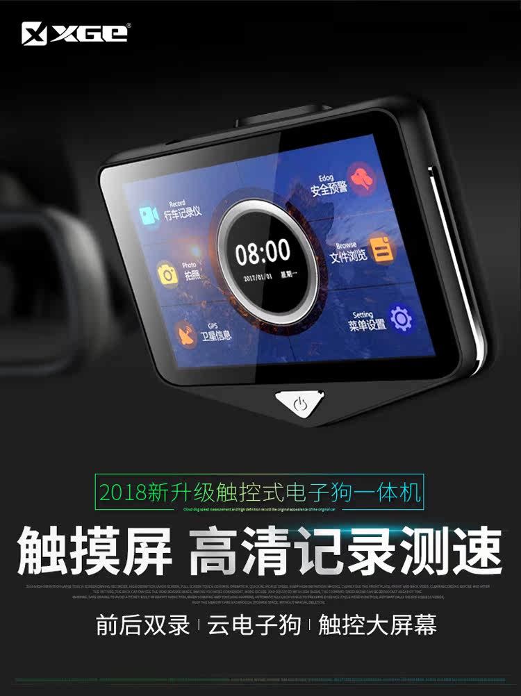XGE新款雙鏡頭行車記錄儀高清夜視汽車電子狗三合一測速一體全景