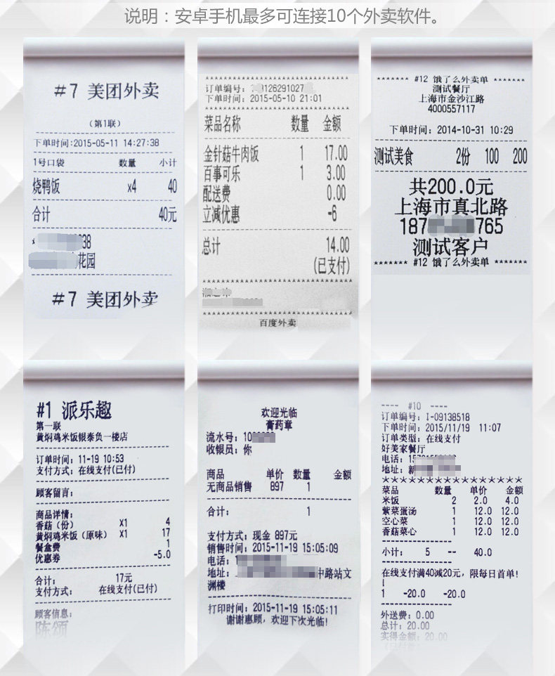 本公司打印紙支持市面上所有的外賣打印機,只要是餓了么美唾度外賣口碑外賣超人等等外賣打印機,不論品牌,不論機型,不論大小,無不論廠家,不論臺式機器還是小機器,怎么買,都不會錯,保證百分之200支持,買錯包退,包退全款,包退來回運費。(百分百支持市面上所有的外賣打印機,例如,餓了么外賣打印機,美團專用外賣打印機,口碑外賣打印機,百度外賣打印機,外賣超人打印機,58HB外賣打印機,鑫寶58D臺式外賣打印機,MPT-II便攜式小打印機,佳博5890臺式外賣打印機,美團 wifi 打印機,Xprinter打印機,CB58B外賣打印機,XP-58II打印機,巨行58HB,群索QS5803,QS5803,邦貝特DL58打印機,資江5890T打印機,OPRT5808打印機,BT58外賣打印機等等)