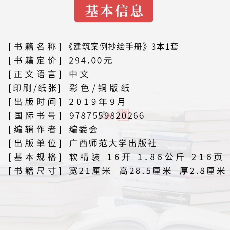 建筑案例抄绘手册 3本1套 附手绘临摹纸 观演体育图书馆文化学校幼儿园博物馆艺术馆展览建筑设计基础书籍价格行情